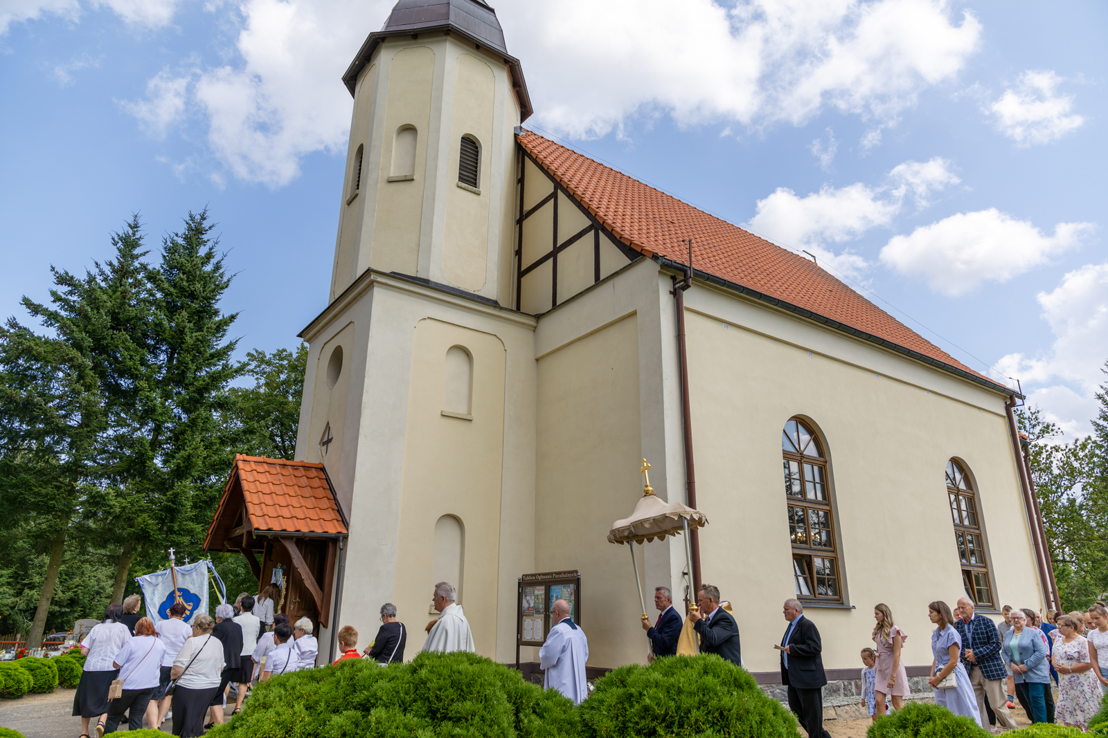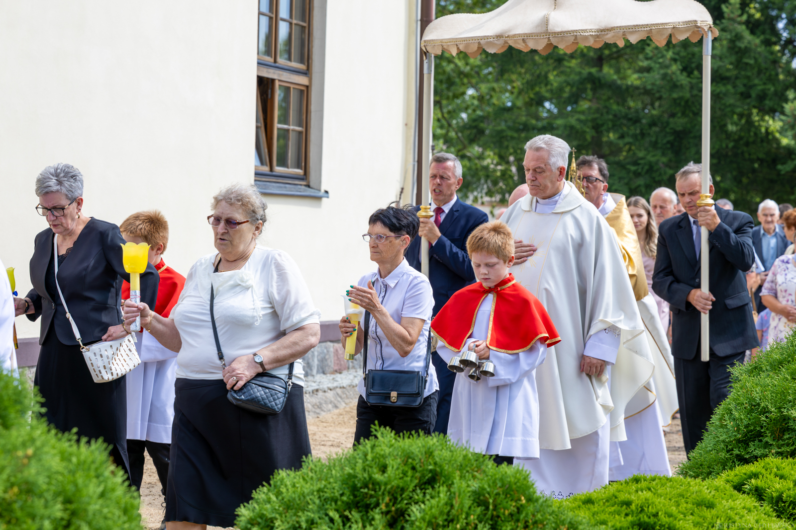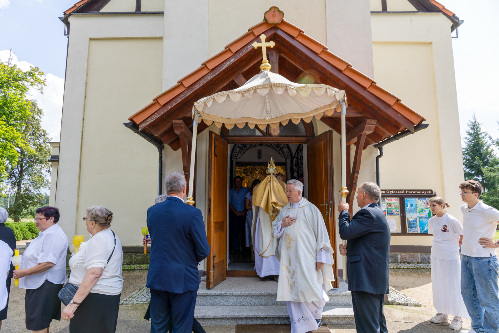 Uroczystość Trójcy Przenajświętszej przypadła w niedzielę 15 czerwca 2025 r. To też jest dzień odpustu parafialnego w naszej parafii. Mszę św. o godz. 11:30 odprawił i homilię wygłosił ks. Zbigniew Kostewicz z parafii Hopowo. Przybliżając tajemnicę Trójcy Świętej szczególnie podkreślał wielką miłość Boga do każdego człowieka. Stąd też życie miłością względem Boga i drugiego człowieka pozwala na dawanie świadectwa wiary. Po uroczystej sumie i wystawieniu Najświętszego Sakramentu odmówiliśmy litanię do Najświętszego Serca Pana Jezusa. Uroczystość zakończyła się procesją wokół kościoła, po powrocie odśpiewaniem hymnu Te Deum i przyjęciem Bożego błogosławieństwa. Wyjątkowość odpustu parafialnego podkreślił oprawą muzyczną chór naszej parafii - św. Józefa pod dyregenturą p. Marcina Kiedrowskiego.