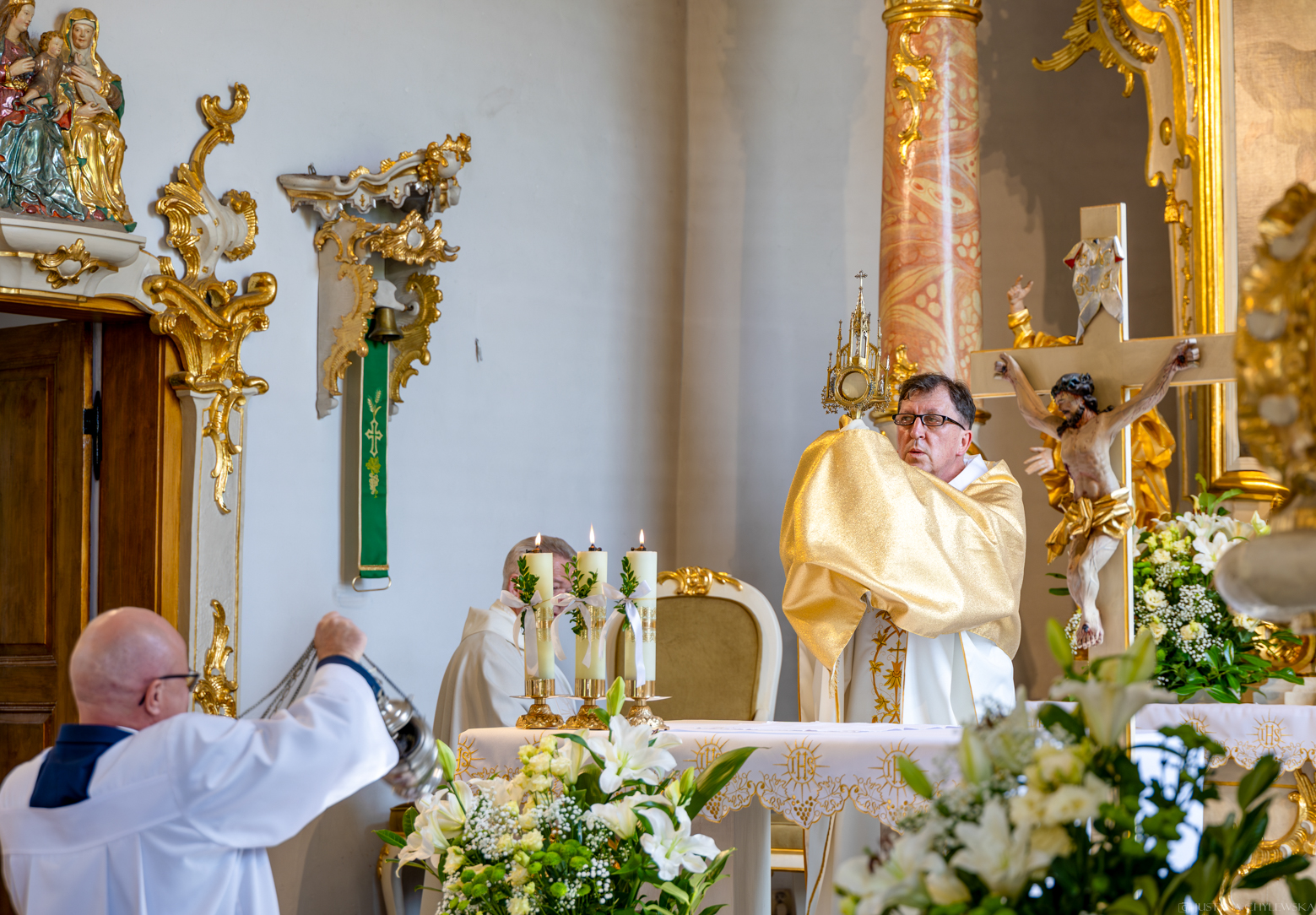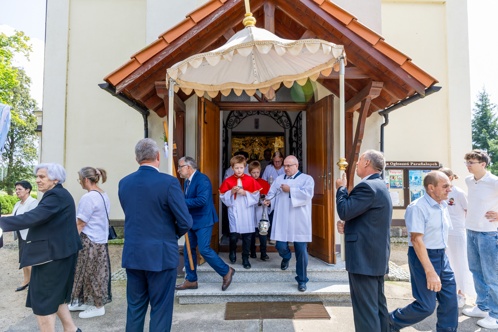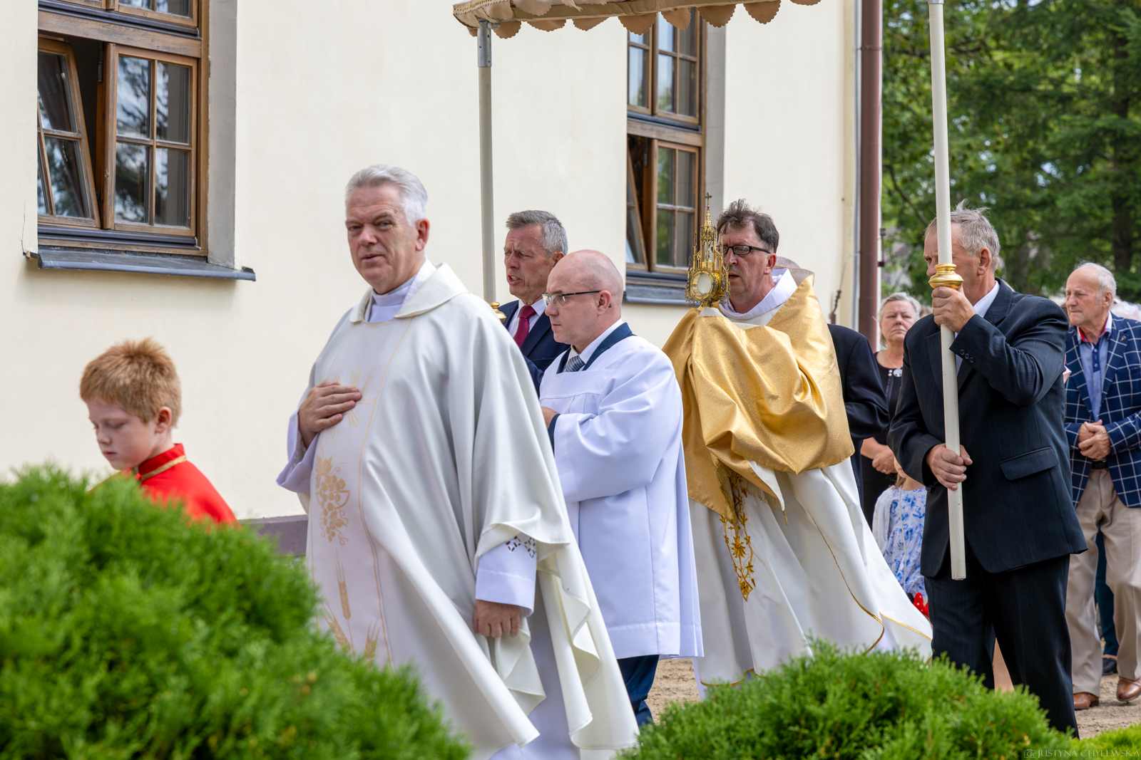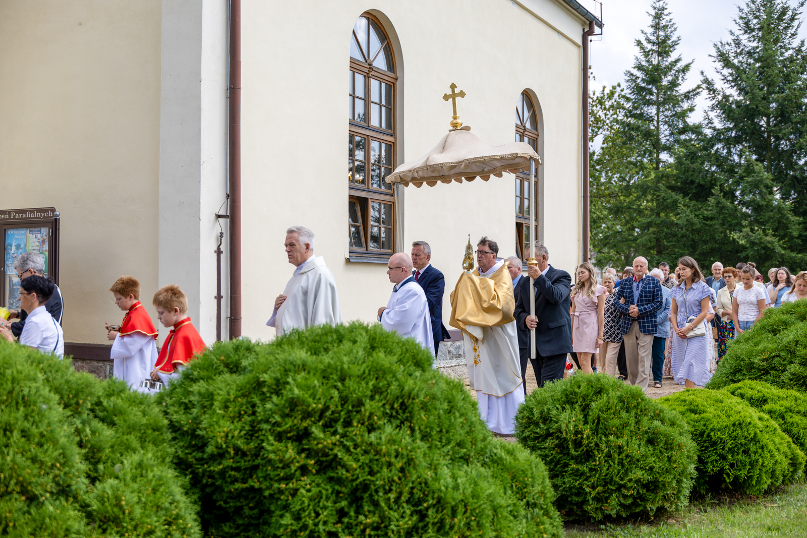 Uroczystość Trójcy Przenajświętszej przypadła w niedzielę 15 czerwca 2025 r. To też jest dzień odpustu parafialnego w naszej parafii. Mszę św. o godz. 11:30 odprawił i homilię wygłosił ks. Zbigniew Kostewicz z parafii Hopowo. Przybliżając tajemnicę Trójcy Świętej szczególnie podkreślał wielką miłość Boga do każdego człowieka. Stąd też życie miłością względem Boga i drugiego człowieka pozwala na dawanie świadectwa wiary. Po uroczystej sumie i wystawieniu Najświętszego Sakramentu odmówiliśmy litanię do Najświętszego Serca Pana Jezusa. Uroczystość zakończyła się procesją wokół kościoła, po powrocie odśpiewaniem hymnu Te Deum i przyjęciem Bożego błogosławieństwa. Wyjątkowość odpustu parafialnego podkreślił oprawą muzyczną chór naszej parafii - św. Józefa pod dyregenturą p. Marcina Kiedrowskiego.
