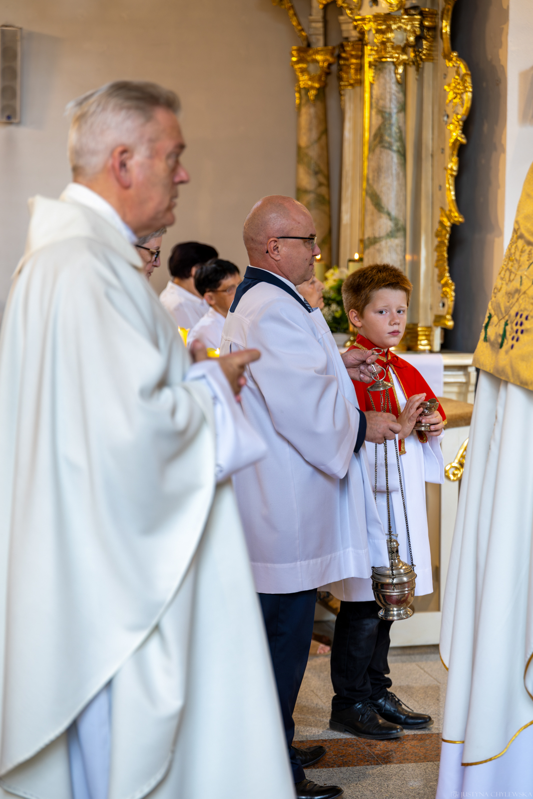 Podczas Mszy św. w niedzielę 1 czerwca 2025 r. o godz. 11:30 do naszej parafialnej Liturgicznej Służby Ołtarza oficjalnie zostali włączeni nowi ministranci: Mikołaj, Oskar, Franek, Piotr, Alan, Miłosz, Franek i Adam. W tę zaszczytną posługę przygotowywani byli przez ostatni rok formacji i asyst przy Ołtarzu. W obecności Księdza Proboszcza Henryka Fetke złożyli uroczyste przyrzeczenie sumiennego wykonywania obowiązków ministranta: pobożnie, gorliwie i radośnie na chwałę Bożą, i dla dobra wspólnoty parafialnej. Serdecznie im oraz rodzicom gratulujemy decyzji i życzymy wielu łask Bożych.